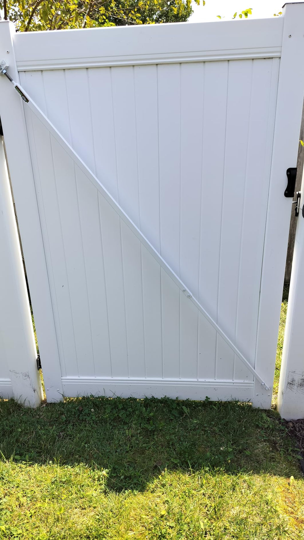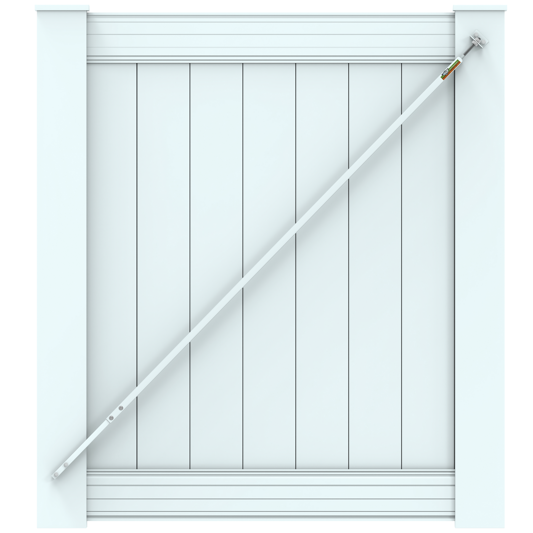 It is a White Gate Hardware Kit for Outdoor Yard Vinyl Fence Gates.  Our patented USA made brace is designed for Vinyl privacy fence gates.  It is an excellent anti-sag gate kit that you can bolt onto your gate without rebuilding your gate.